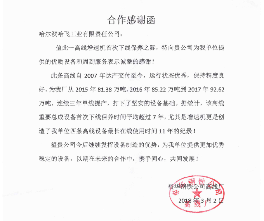 哈爾濱哈飛工業(yè)有限責(zé)任公司旗下的機(jī)電設(shè)備制造產(chǎn)業(yè)是目前國(guó)內(nèi)規(guī)模大、專業(yè)的高速線材軋機(jī)和棒材軋機(jī)整機(jī)及備件的生產(chǎn)制造企業(yè)。公司現(xiàn)坐落于哈爾濱市平房區(qū)汽車零部件工業(yè)園B區(qū),占地面積30000多平方米。現(xiàn)有員工近550人,其中具有中高級(jí)職稱的研發(fā)及工程技術(shù)人員100余人。   公司曾獲得冶金部授予的“高線軋機(jī)設(shè)備優(yōu)單位”稱號(hào)、國(guó)家技術(shù)進(jìn)步二等獎(jiǎng)等獎(jiǎng)項(xiàng),公司生產(chǎn)的十八項(xiàng)高線軋機(jī)重要部件通過了技術(shù)鑒定... +MORE